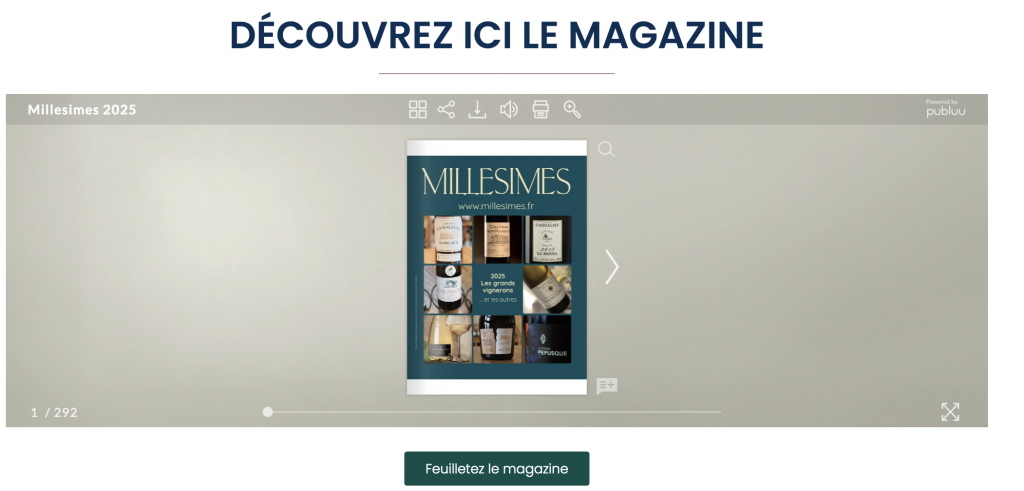 Et MILLESIMES est beaucoup plus qu’un magazine « papier » : accédez à notre « FLIPBOOK » également en accès gratuit et permet d’être consulté n’importe où, n’importe quand, en feuilletant les pages, comme un vrai magazine