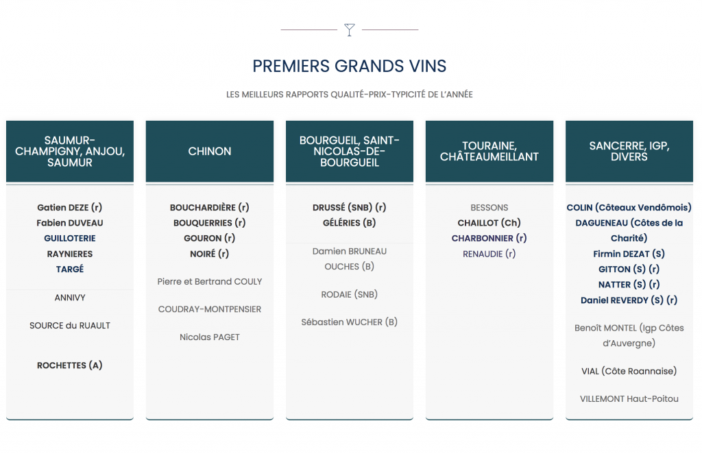 Ces blancs sentent tout aussi bon leur Sauvignon ou leur Chenin. Les Sancerre et Pouilly-Fumé sont franchement superbes, à des prix formidables (8 à 20 €), sans comparaison possible. Il suffit de goûter un Sancerre Les Belles Dames et un autre Les Romains, un Quincy ou un Pouilly-Fumé Silex pour s’assurer de la typicité des vins.