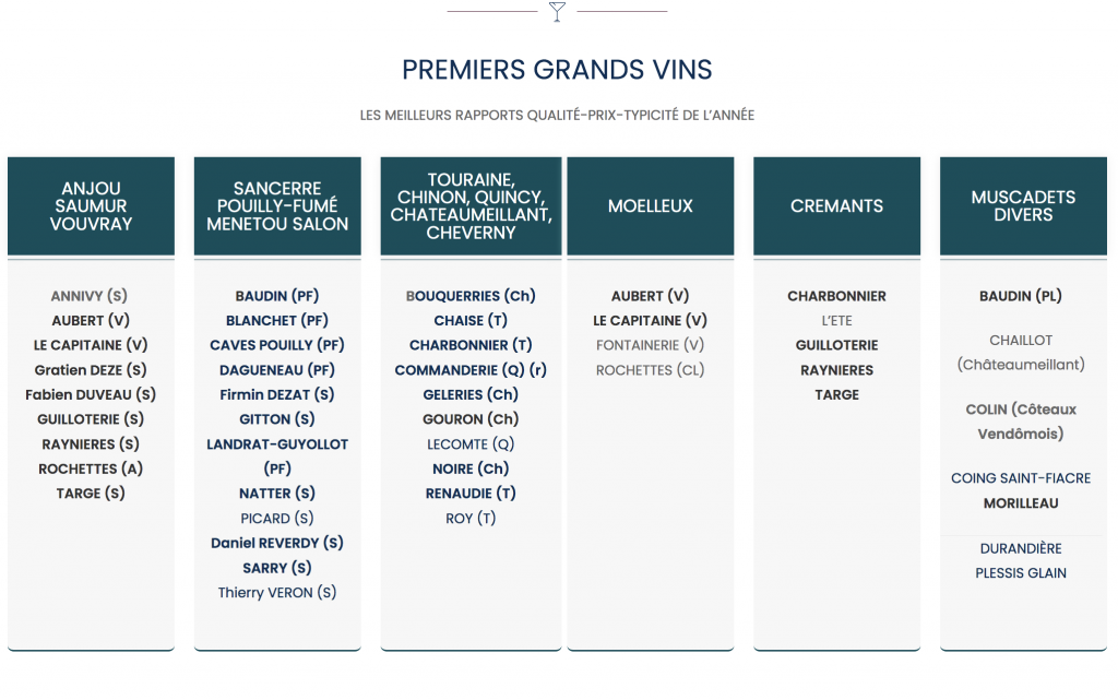 Racés, frais, vifs, parfumés par ce Sauvignon qui ne s’exprime nulle part ailleurs aussi bien, sur ces sols de caillottes, de silex, de terres blanches, de marnes kimméridgiennes… Menetou-Salon, Quincy, suivent, comme le Muscadet. Les blancs secs 2023 à 2007 sont dans la belle lignée des 2006, et la typicité s’allie à un rapport qualité-prix régulièrement remarquable.